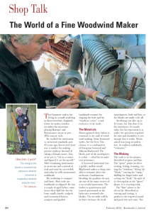 Now regular readers of this blog will recall that we published a series on building a 10" disc sanding station for your lathe, but Mike's idea went in a different direction. and then I came across an article in the Feb 2014 issue of Woodworker's Journal Magazine featuring an master woodwind maker, Tim Cranmore. The one page article has a photo of Tim sanding a part on what is obviously a shop-built sanding drum powered by his lathe.