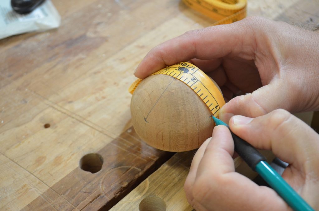 The first lesson I learned from this process is that circular sanding disks do not lay flat on hemispherical surfaces! I needed a way to figure out how to "dart" the disk to fit best on the domed surface of the block.
